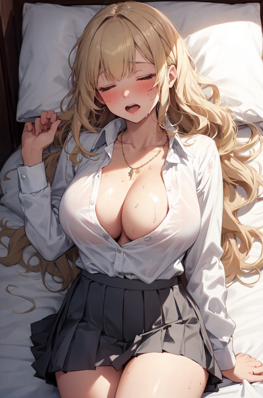 もう片手は太ももに伸び、指先が肌の上を滑るように触れ、徐々にスカートの奥へと進むと、そこにはわずかな熱と湿り気を感じた。